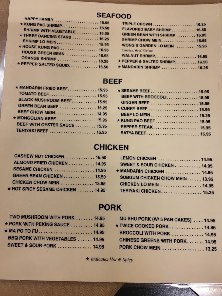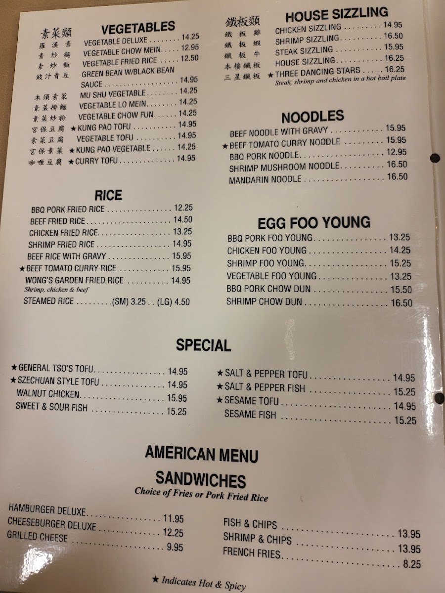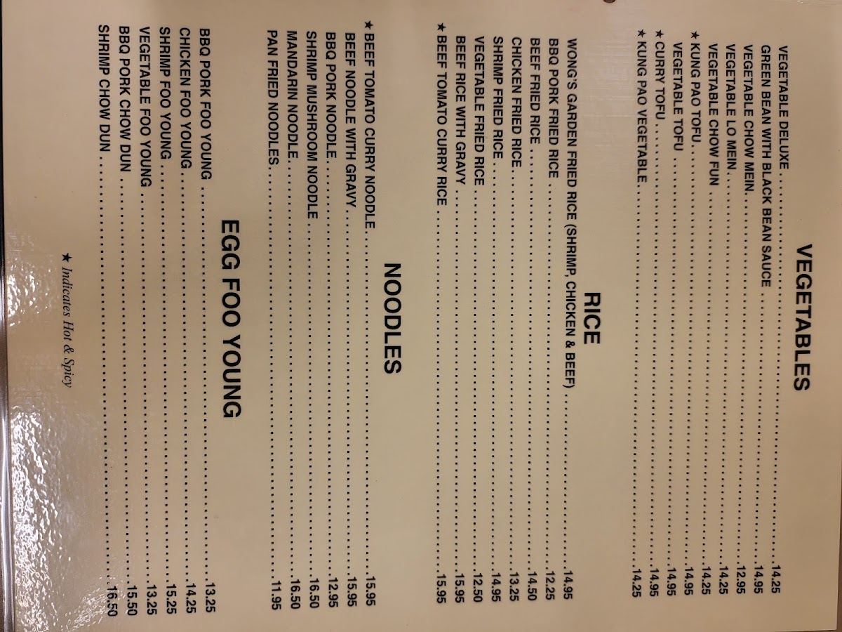 Wong's Garden offers a menu that strikes a balance between familiar Chinese-American dishes and authentic regional flavors, presented in a straightforward, approachable style. The menu invites diners to enjoy generous portions of comforting classics like orange chicken, chow mein, and hot & sour soup, alongside more traditional options such as Mongolian beef and sesame tofu. Whether you’re stopping in for a quick weekday lunch or settling in for a family dinner, the food complements the casual and welcoming atmosphere with its comforting, satisfying nature.
