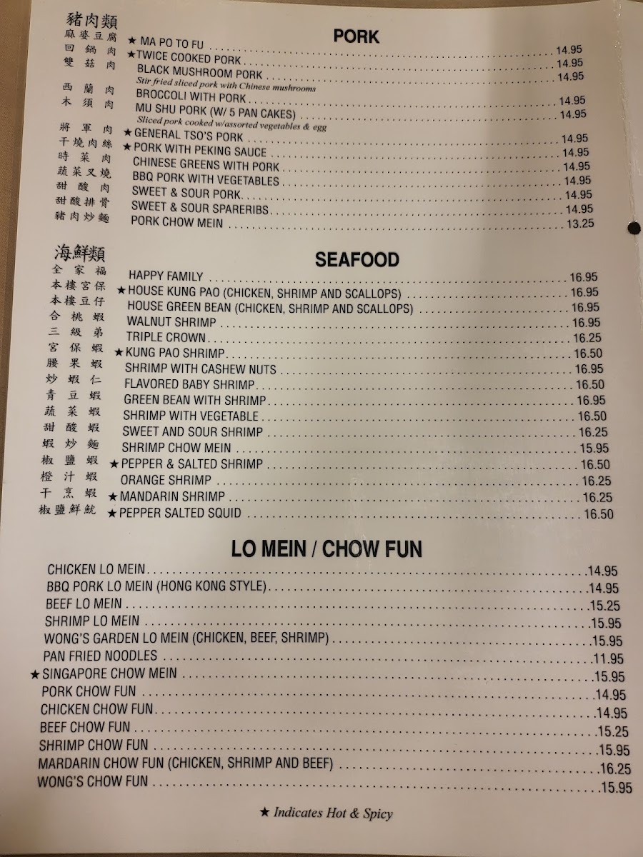 Many dishes lend themselves well to sharing, making Wong’s Garden a great choice for groups or those who appreciate having leftovers to enjoy later. The menu’s broad selection covers everything from hearty noodle soups and fried rice to seafood specialties and spicy favorites, catering to a range of tastes without complication. You’ll find simple pleasures like sesame chicken and sweet and sour pork alongside less common items like walnut chicken or salt & pepper shrimp—each reflecting a thoughtfully casual take on Chinese cuisine.